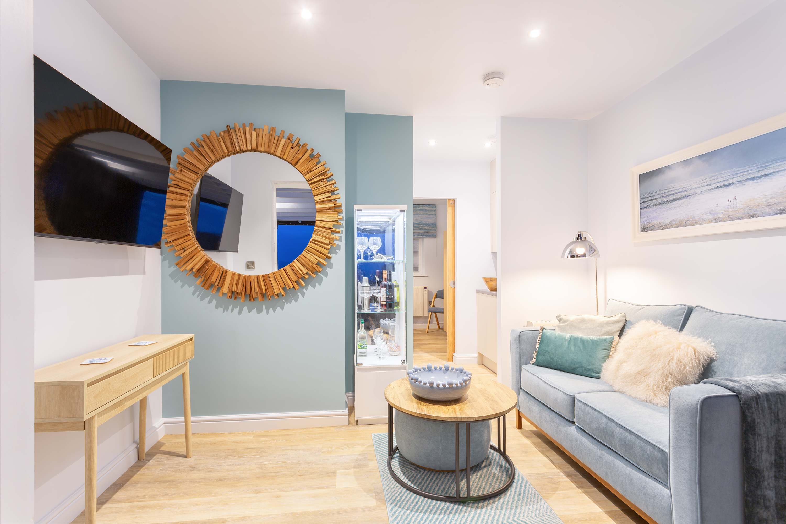 • Compact but cleverly-designed living area: Your light and airy living room provides the perfect space to relax. Relax on the comfy sofa, have a snack at breakfast bar, while looking out to the sea view through the bifold doors. There’s a flat screen TV and cable channels too.