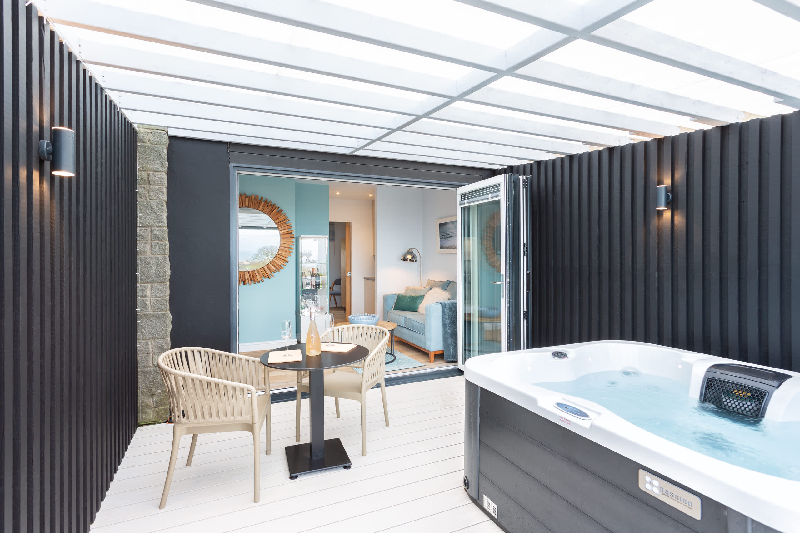 • Bifold doors open up onto your private outdoor space and your very own whirlpool hot tub.