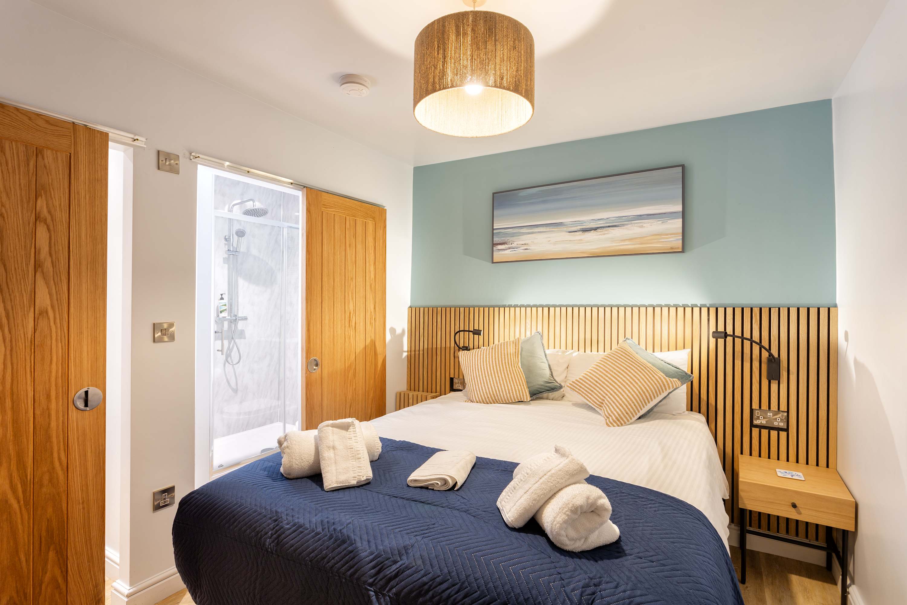 • Double bedroom: The bedroom features a king-size, deep-sprung double bed that can be set up as a double or two singles. The ensuite shower room is sleek and modern.